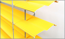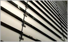 Les stores à lamelles ourlées sont les brise-soleil le plus répandu sur les usines et bureaux.